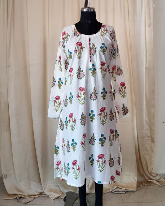 135 White Printed kurta with Pom-pom lace and bell sleeves