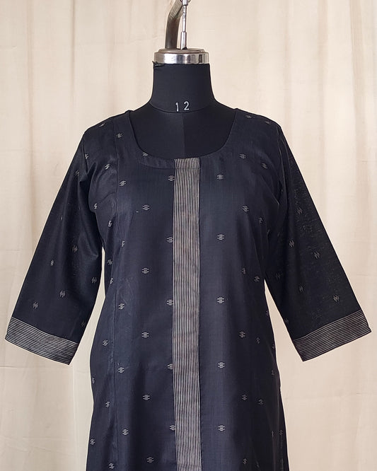 204 Black soft cotton kurta with stripes