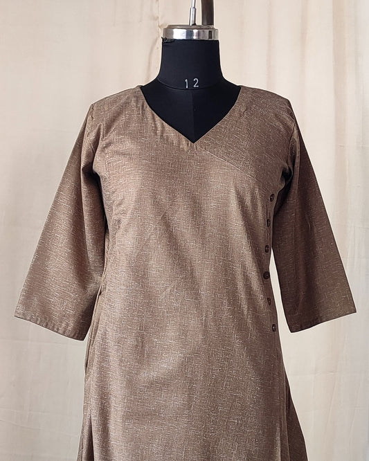 202 Beige co-ord set with overlap pattern and buttons