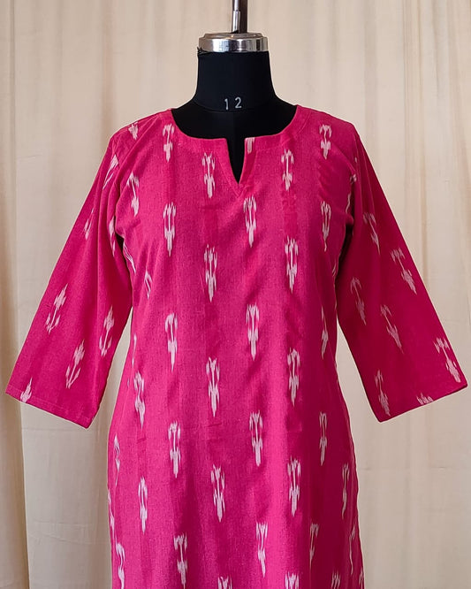 193 Fresh Pink Ikkat Straight Cut Kurta