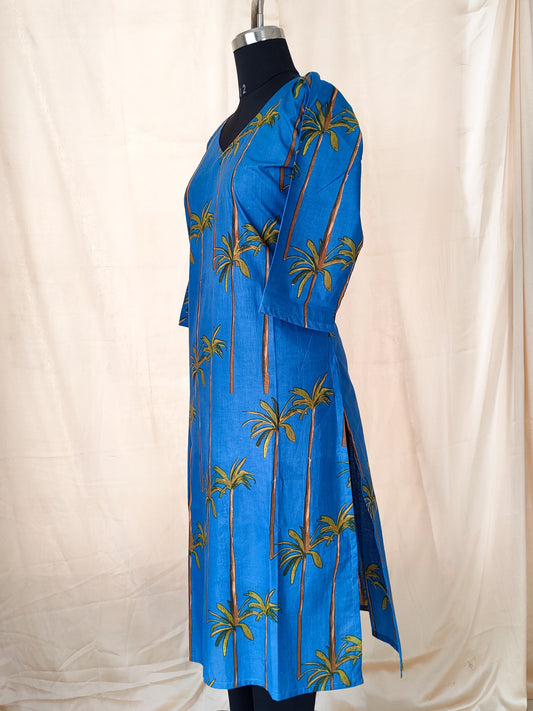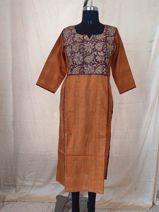 54 Mustard Colour A Line Kurti With Kalamkari Patch