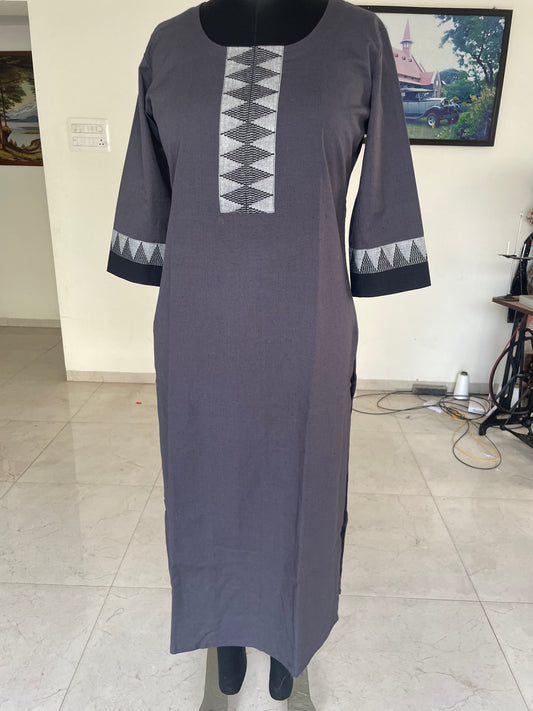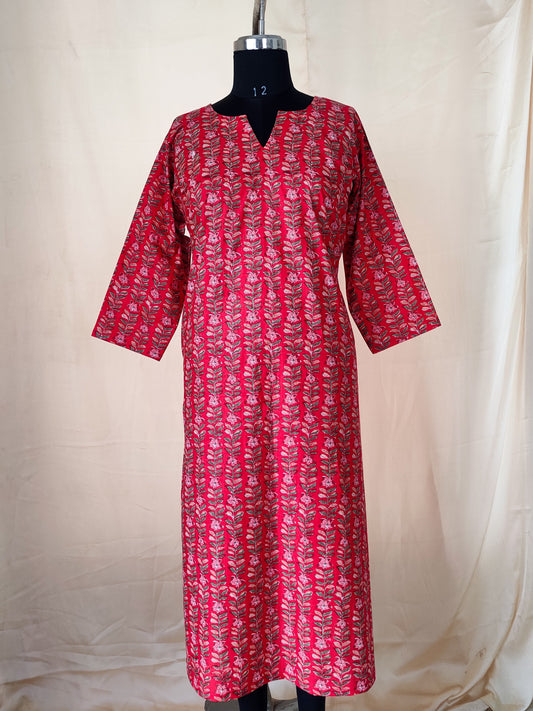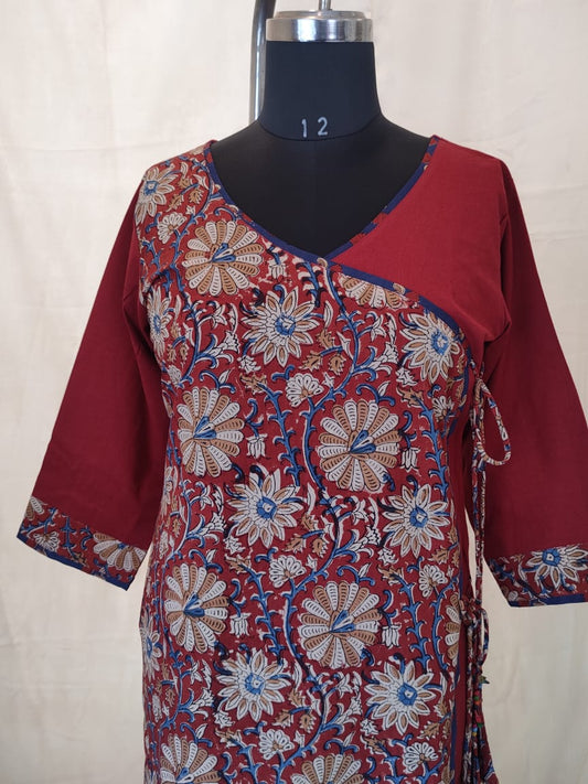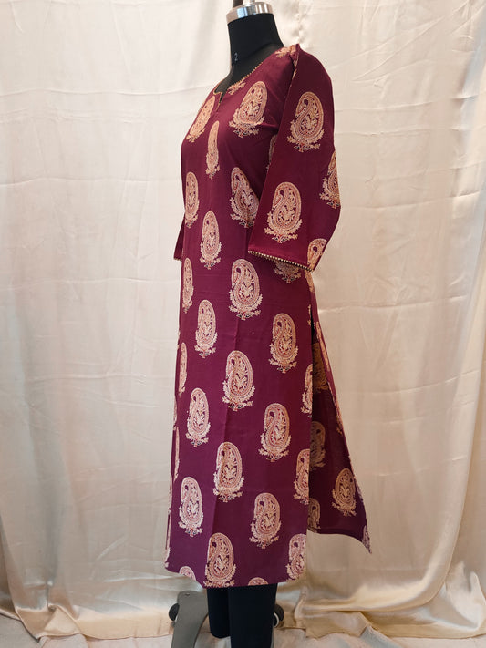 46 Marron Kurti With Kalamkari Overlap Pattern With Tassels