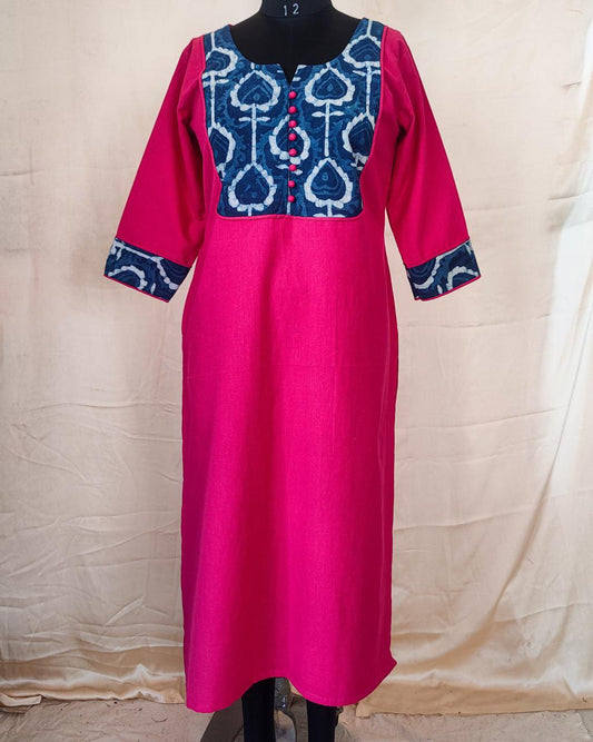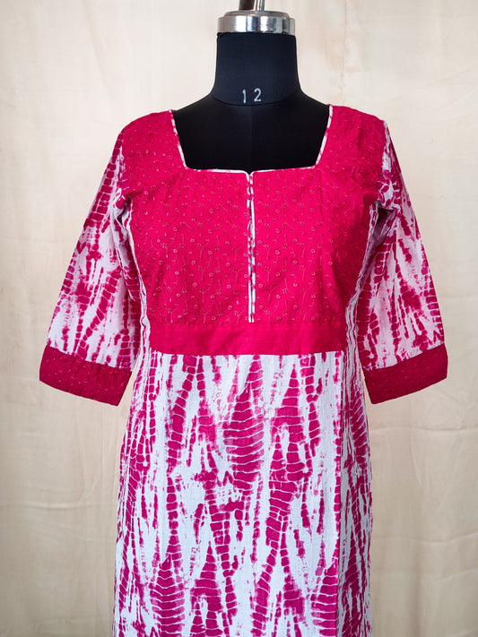 74 Pink Tie and Dye Kurta with Pink Yoke Patch