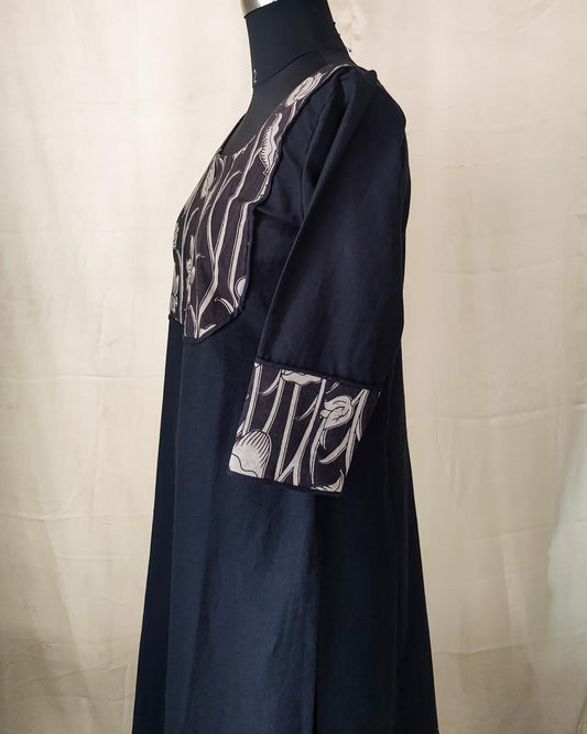 82 Pink Kurta with Indigo Yoke Patch and Potlis