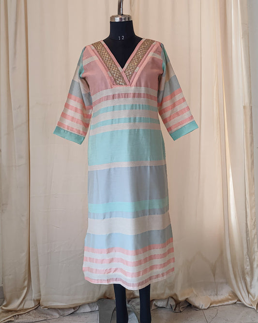 166 Pastel Coloured Chanderi Kurta With Lace Detailing