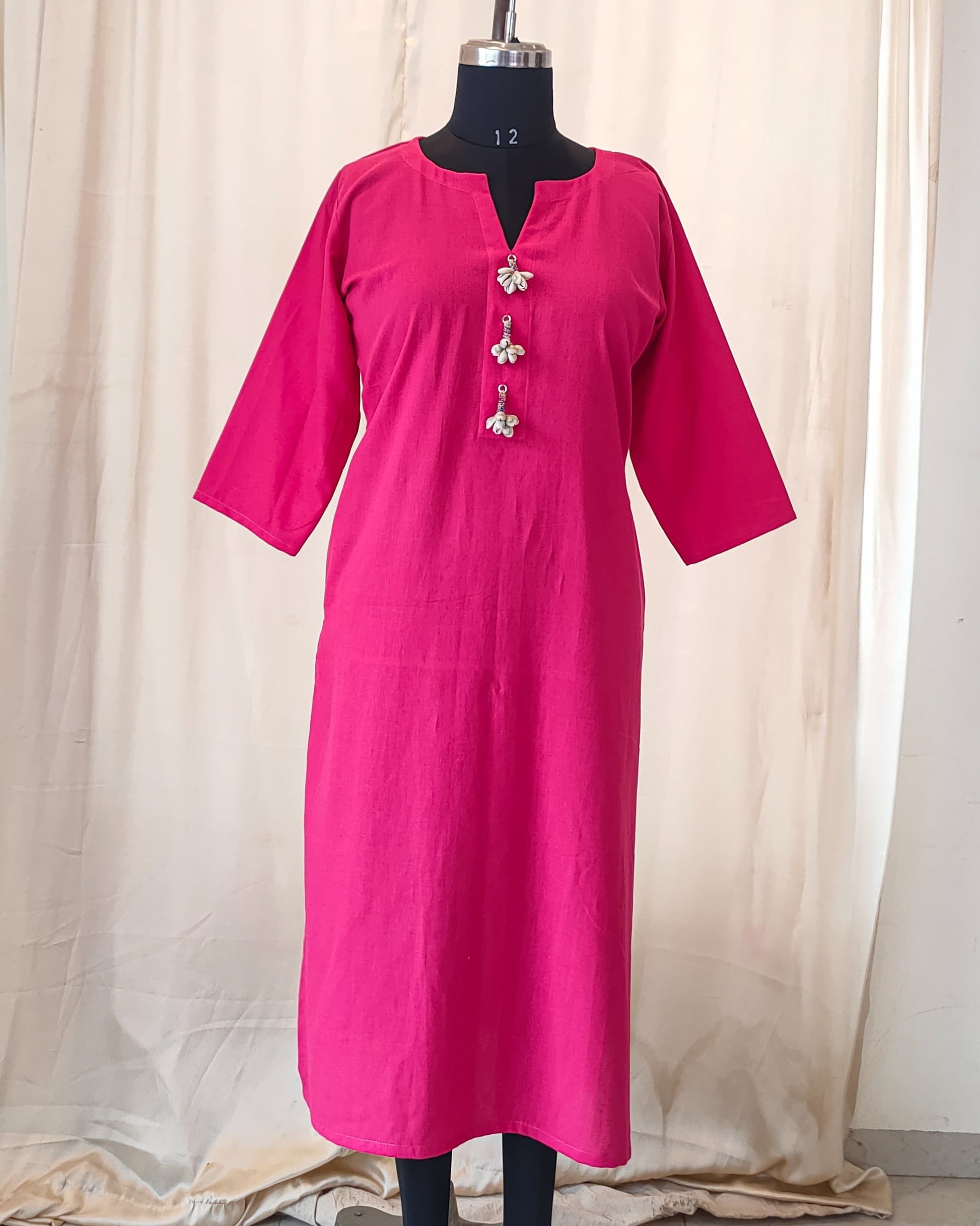 This pink kurta is elevated with delicate shell tassels that add movement and charm. Feminine, breezy, and unique — it’s perfect for brunches, small gatherings, or when you want a touch of playful elegance. 🌸 Pretty in pink | Sizes up to 4XL | Pure cotton comfort with handcrafted detailing