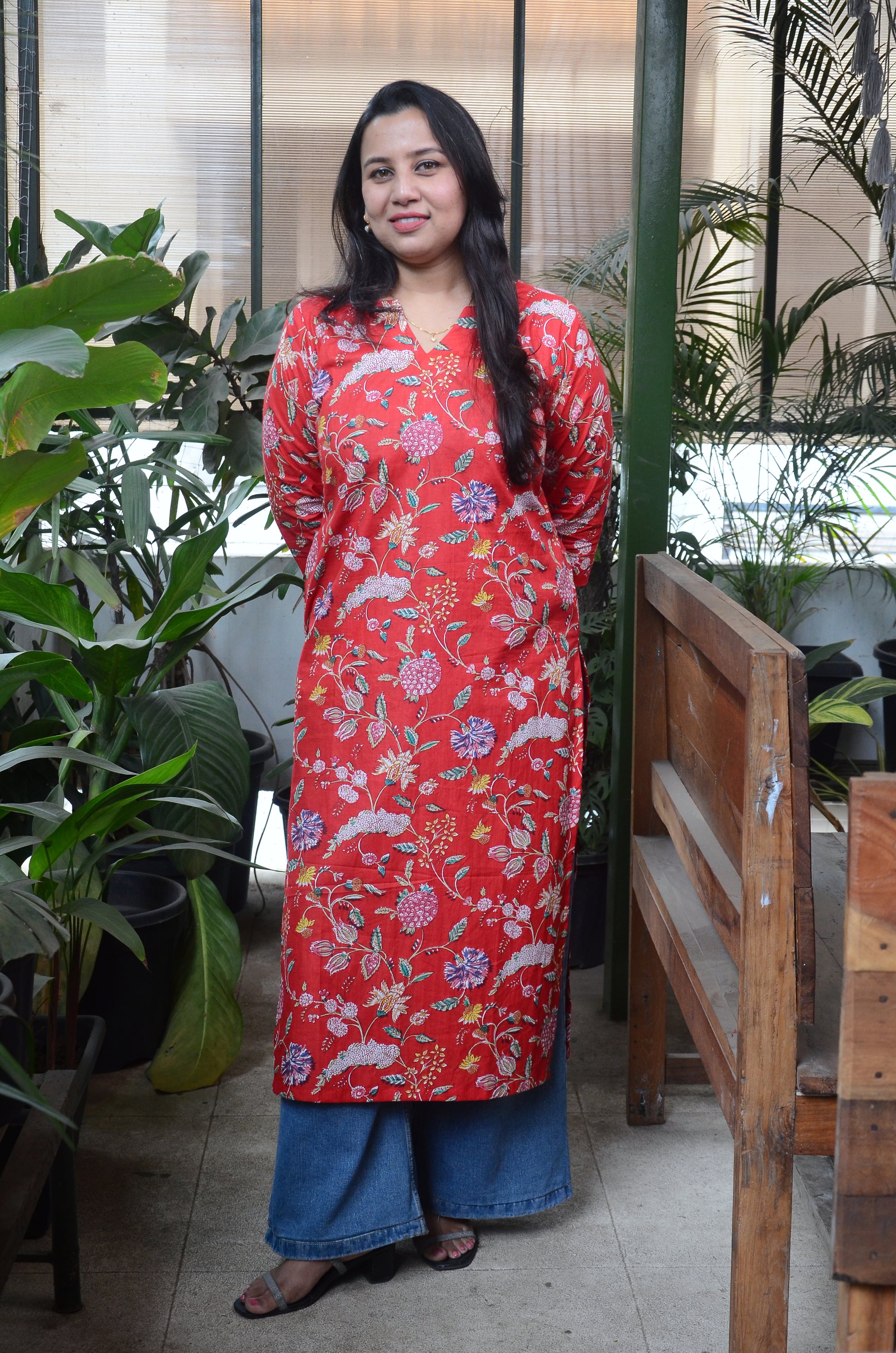 178 Red Floral Printed Straight-line Kurta