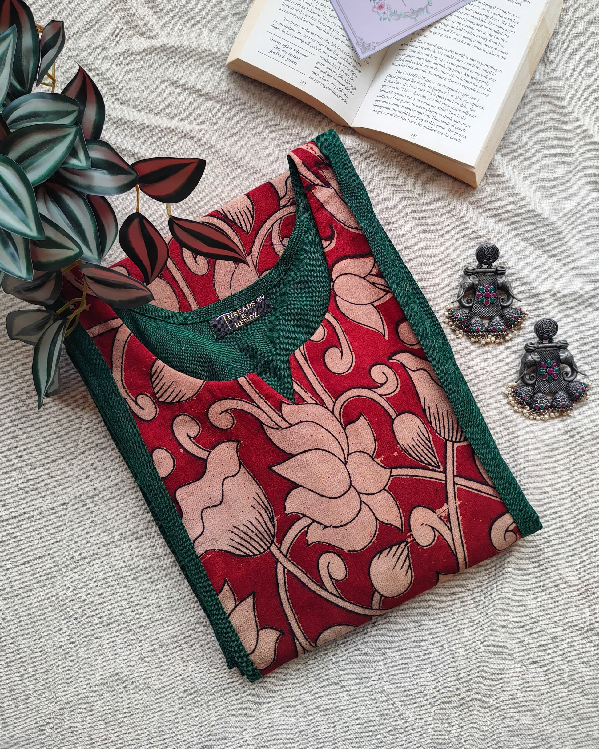 A deep, regal Bottle Green straight-cut kurta featuring a prominent Kalamkari panel detail. The straight silhouette maintains a tailored and polished appearance, while the deep green hue is both classic and flattering. This kurta is a sophisticated way to incorporate traditional print into your everyday or office wardrobe. The rich bottle green color provides an elegant, dark backdrop that makes the traditional Kalamkari print truly pop.