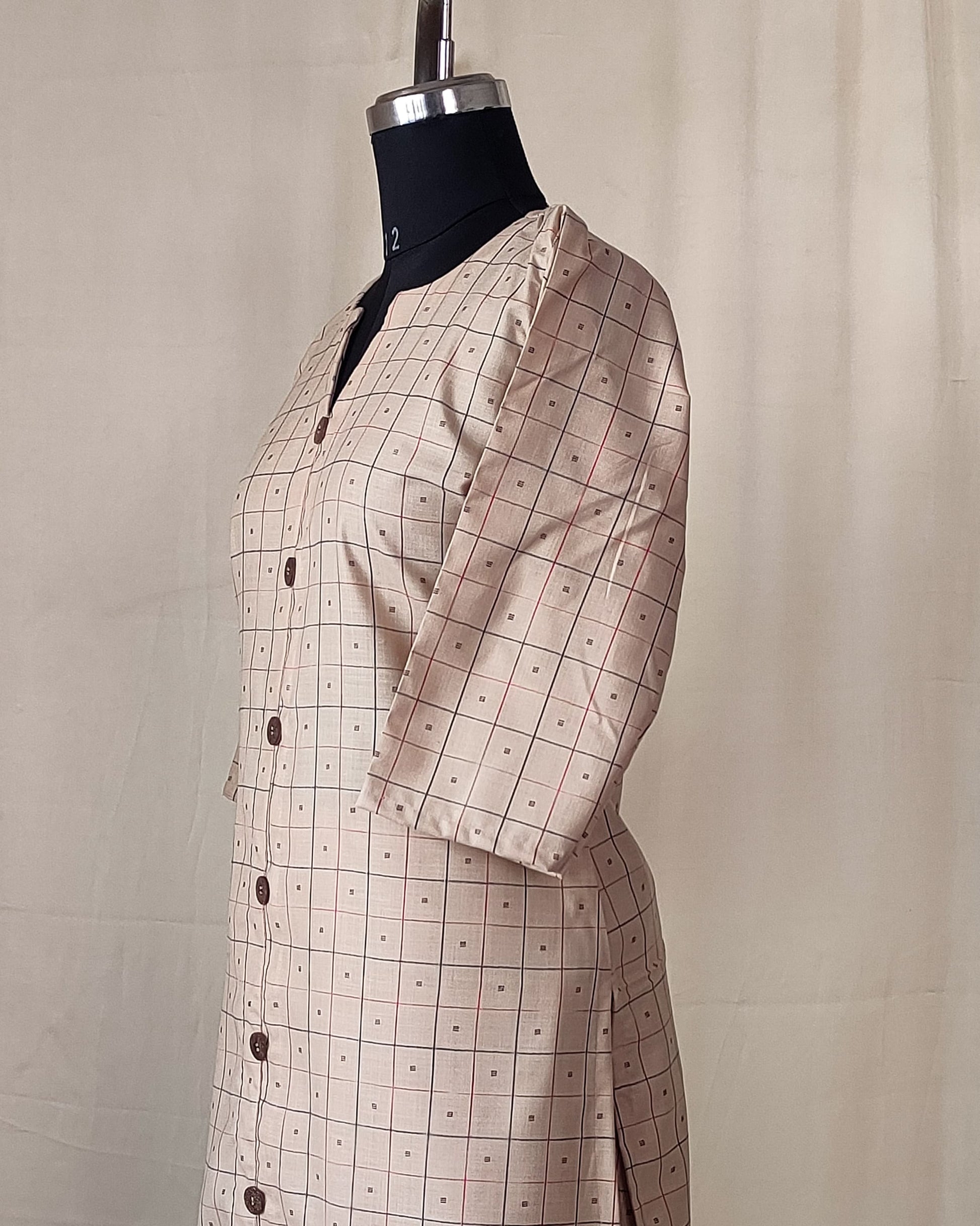 201 Cream checks co-ord set with buttons
